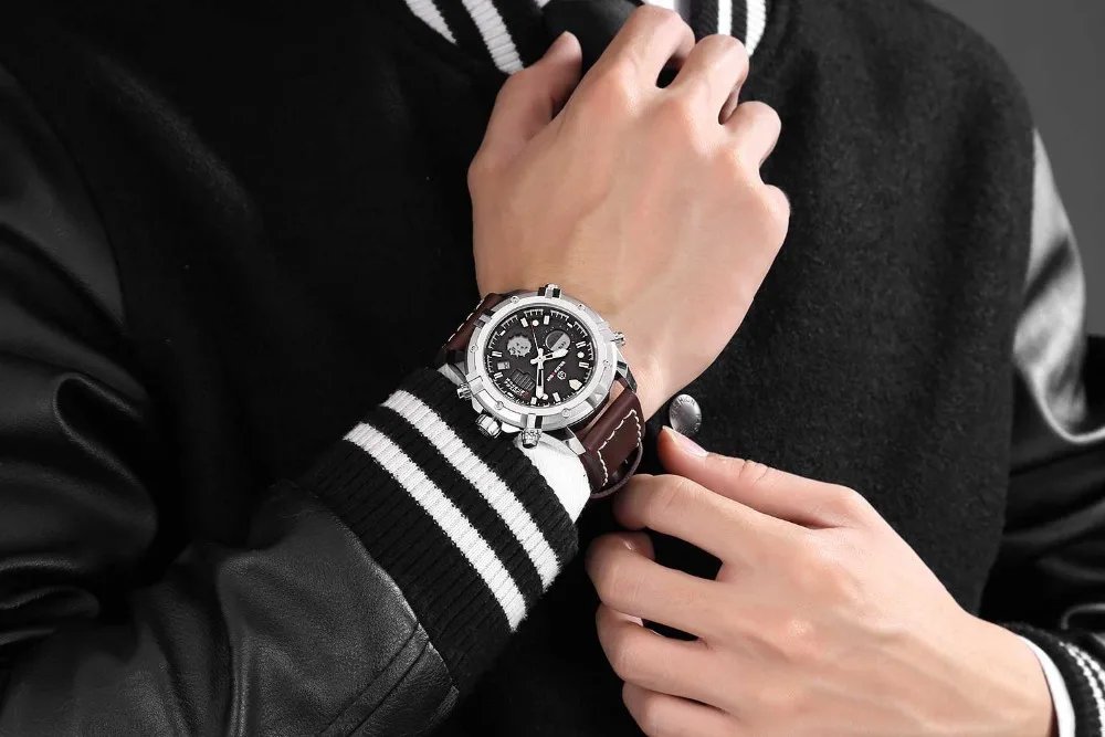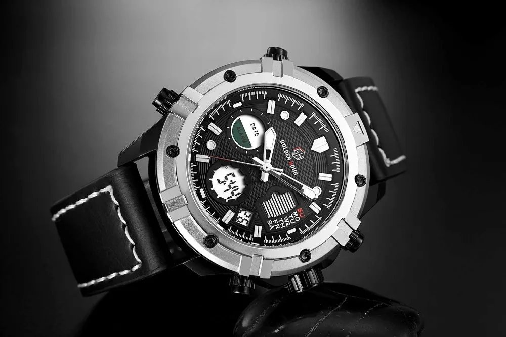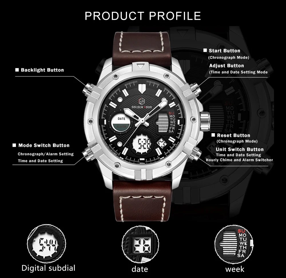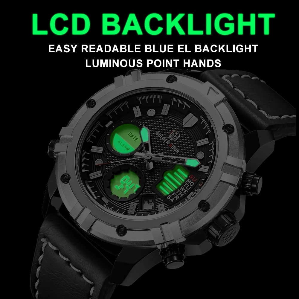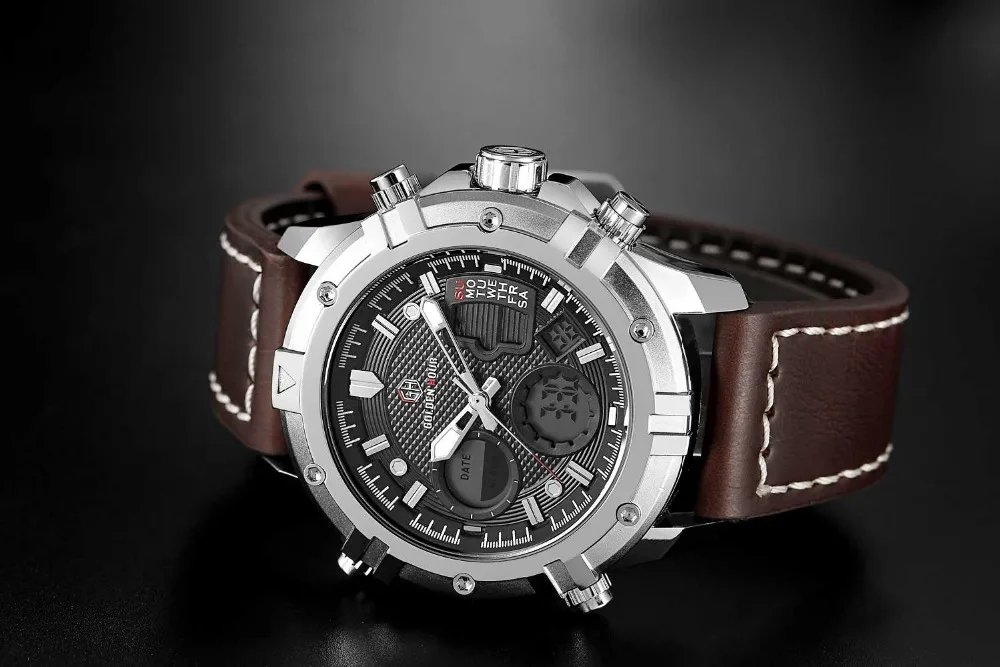 GOLDEN HOUR GH-111  Luxury Waterproof Leather Men Wristwatche